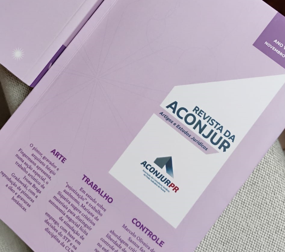 A Revista da Aconjur nº 6 vai ser lançada, na versão online, no dia 27 de novembro. A partir dessa data, será possível acessar, pela página da associação na internet, o conteúdo dos artigos e trabalhos jurídicos da edição. Desta vez, um capítulo especial vai reproduzir trabalhos da artista Ivone Gradowski, com pinturas acrílicas sobre tela e aquarela e grafite sobre papel.
